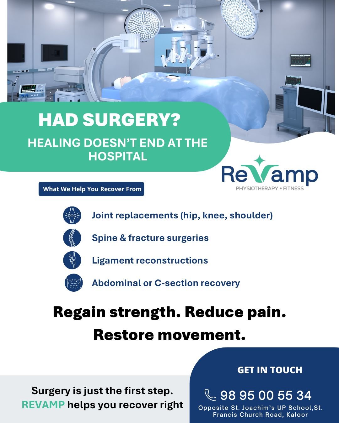 Rooted in Kaloor, trusted across Ernakulam, Revamp is where compassionate care meets proven physiotherapy.